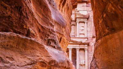 Потопете се в магията на Петра - древния „Изгубен град“, който се разкрива пред вас след пешеходна разходка по внушителен каньон със стръмни скални стени, известен като Сик. Там, сред скалите, ще откриете шедьоври на древната архитектура - гробници, храмове и цели фасади, изсечени директно в пясъчника от набатеите преди повече от 2000 години.