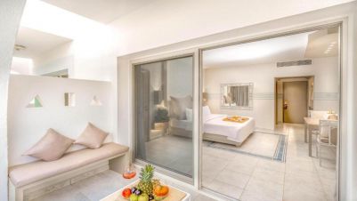Всички стаи и суити са модерно обзаведени и разполагат с телевизор и балкон с изглед към басейна или морето. Самостоятелните бани са с душ, сешоар и халати.
