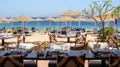 В Domina Coral Bay има 3 ресторанта, които сервират местни и международни ястия. Вечер гостите могат да си поръчат вкусен коктейл в някой от 12-те бара на комплекса. Допълнително хотелът разполага с 8 а-ла-карт ресторанта.