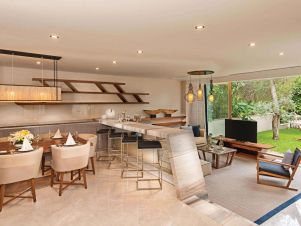 Family room: 49 м2, две стаи разделени с преходна врата, едната стая е с голяма спалня, а в другата стая с две единични легла, 1 баня и тоалетна, балкон, огледална телевизия, интернет, диркетна телефонна линия, централен климатик, сейф, сешоар, сет за чай и кафе.