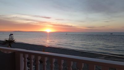 Собствен пясъчен плаж пред хотела. Безплатни чадъри и шезлонги срещу консумация от плажния бар.