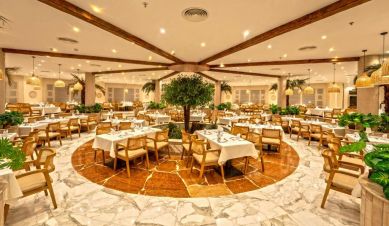 Основен ресторант, 4 а-ла-карт ресторанта (рибен, турски, италиански, азиатски–с предварителна резервация, 1 безплатно посещение на 1 от ресторантите при минимум 7 нощувки, 5 бара, 4 открити басейна (2 отопляеми през зимния период), водни пързалки, СПА център, магазини.