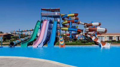 За децата: детско меню, детски басейн, мини аквапарк с 6 водни пързалки, детска площадка, мини клуб (3-12 г.), мини диско, детска анимация.