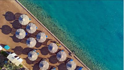 Собствен, пясъчен. Чадъри, шезлонги и матраци на плажа и при басейна - безплатно. Плажни кърпи - безплатно.