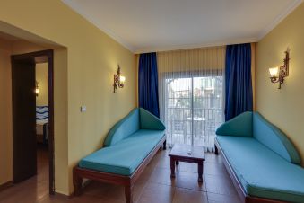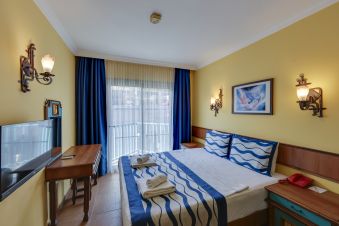Хотелът разполага с общо 274 стаи, разположени в 3-етажни сгради, от които 33 Club room (нереновирани стаи - 26 м²),178 Hotel room (реновирани стаи, разположени в основен корпус или в триетажни сгради - 26 м²), 28 Club family room (нереновирани стаи, 2 спални, 1 баня - 45 м²) , 35 Family hotel room (реновирани стаи, 2 спални, 1 баня - 45 м²), Disabled Room (пригодени за хора с ограничена подвижност - 26 м²).