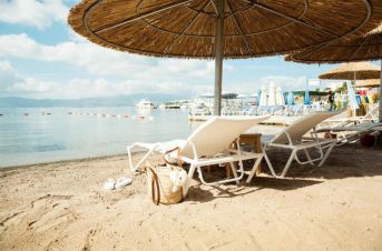 Собствен, пясъчен, платформа. Чадъри, шезлонги и плажни кърпи на плажа и при басейна – безплатно.