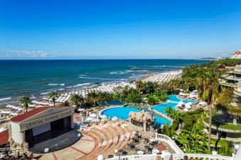 0сновен ресторант, диетично меню, вегетарианско меню, 4 a - лa - карт ресторанта (турски, рибен, италиански, мексикански, с предварителна резервация, за едноседмичен престой посещението на два ресторанта 1 път – безплатно), 9 бара, 6 открити басейна, закрит басейн, 3 водни пързалки, кино, лекарски кабинет, СПА център (платено), фризьорски салон (платено), магазини, пералня, химическо чистене, 3 конферентна зала , футболно поле на плажа (25х30) За децата: детски бюфет, 2 детски басейна, 2 детски водни пързалки, мини-клуб (4-12 год.), бебефон (платено), нагревател за бутилки (платено), блендер (платено), детска количка (с резервация, платено) детегледачка (платено). Безплатни услуги: турска баня, сауна, парна баня, фитнес, аеробика, аквааеробика, плажен волейбол, мини-футбол, скуош, боча, 6 тенис корта в твърдо покритие, тенис на маса, дартс, анимационна програма музика на живо (2 пъти седмично), дискотека, безжичен интернет (на цялата територия). Платени услуги: масаж, боулинг (2 пътеки),билярд, наем на тенис, ракети и топки, осветление на тенис ракети и топки, уроци по тенис, игрални автомати, водни спортове, уиндсърфинг (с лиценз), интернет - кафе, фризьор, СПА-център.