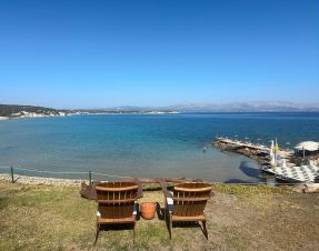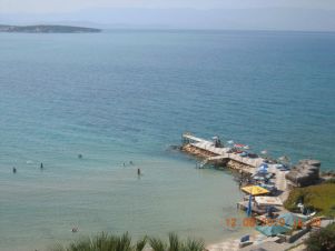 Плаж: дължина на плажната ивица 150 м. Разпределен на 3 нива – първите две нива са с фин пясък, а третото ниво е тревна площ . Морското дъно е с фин пясък плавно полегато. Плажът е удостоен със сертификат „Син флаг“. Има и платформа. Чадъри, шезлонги и матраци на плажа и при басейна- безплатно. Плажни кърпи - безплатно.