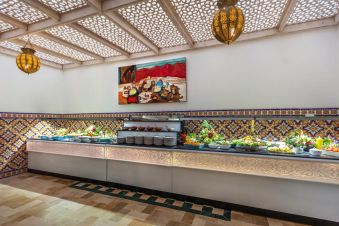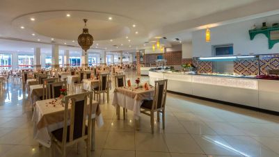 Основен ресторант, лоби бар, снак бар на басейна, мавританско кафене, открит басейн, закрит басейн (отопляем през зимата), аква парк (2 басейна, 10 водни пързалки: 5 пързалки за възрастни, 5 пързалки за юноши, басейн с мини пързалки за малки деца), СПА център, конферентна зала, магазини, обмяна на валута.