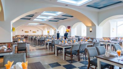 Основен ресторант OBlu, 4 тематични а ла карт ресторанта, всеки от които може да бъде посетен безплатно веднъж по време на престой след предварителна резервация (в хотел Medina Belisaire & Thalasso със средиземноморска кухня, в хотел Medina Diar Lemdina с мароканска кухня, в хотел Medina Solaria & Thalasso с италианска кухня, в ресторант Shaherezade” в хотел Medina Diar Lemdina с тематична вечеря 1001 нощи), снек ресторант, лоби бар, бар басейн, плажен бар, мавританско кафене, външен басейн, закрит басейн, денонощна рецепция, 5 конферентни зали, Таласо център, обмяна на валута, анимация.