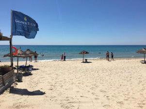 Собствен, широк, пясъчен и леко наклонен плаж, първа брегова линия. Чадъри, шезлонги, матраци и плажни кърпи на плажа и при басейна - безплатно.